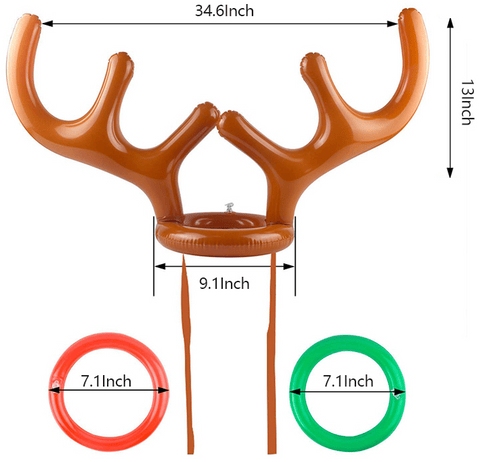- Das aufblasbare Rentiergeweih-Wurfspiel ist leicht und tragbar, ein gutes interaktives Spiel. Sie können dieses Geweih auf dem Kopf tragen oder es mit Ihren Kindern auf der Weihnachtsfeier werfen. Der Spieler, der die meisten Ringe um das Geweih hat, gewinnt einen Preis!