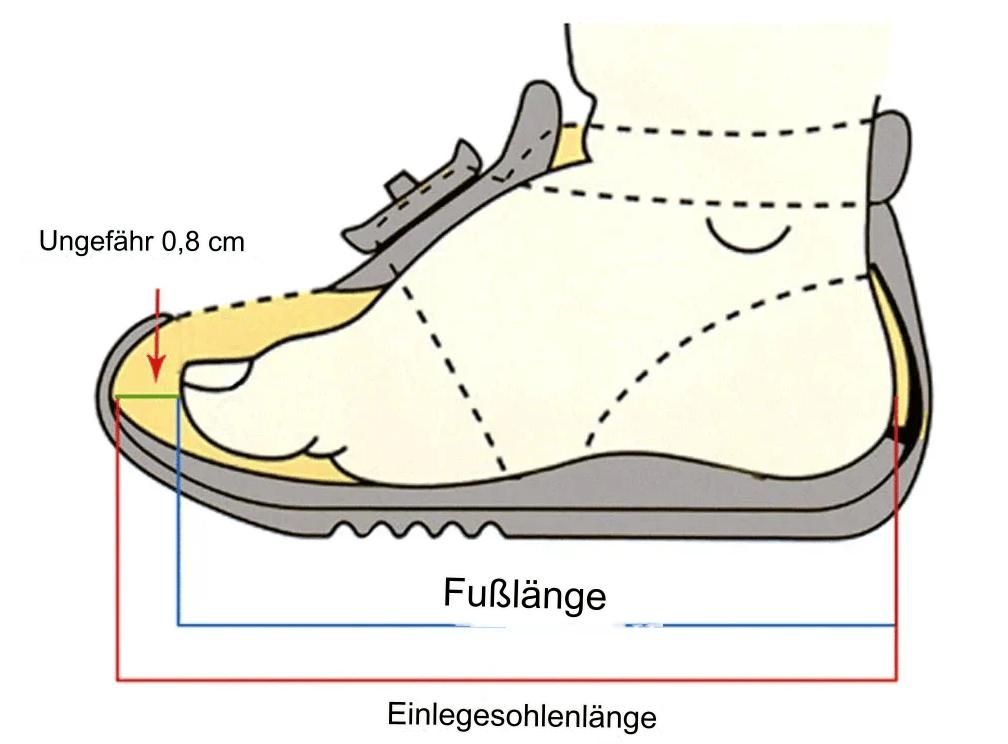 Schritt 2: Zeichne eine Linie am Ende der Ferse und eine Linie am Ende der längsten Zehe.