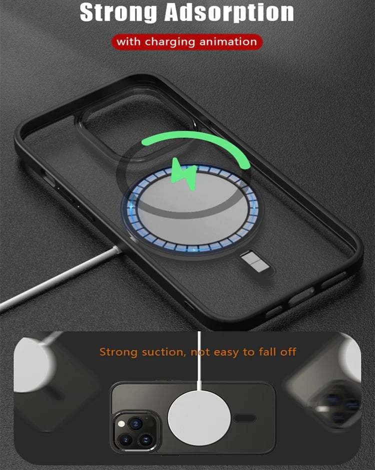 Kabelloses Laden mit magnetischer Gehäusehülle. Lässt sich mühelos an Ihrem iPhone befestigen und ermöglicht einfaches und sicheres kabelloses Laden.